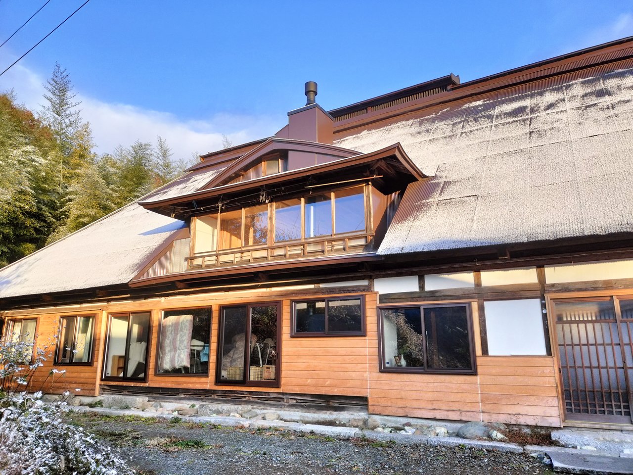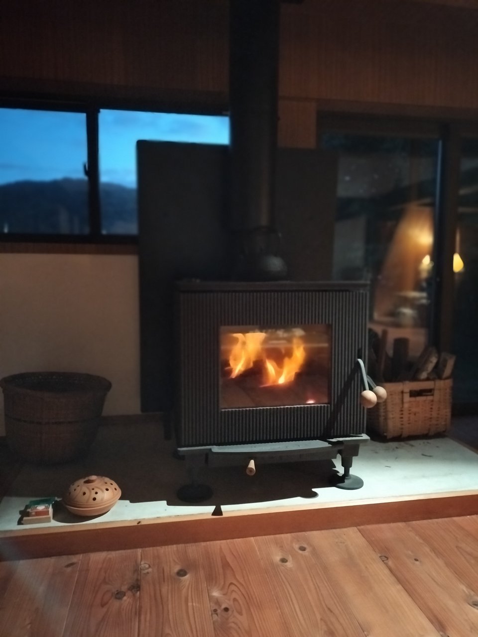 As this is a traditional Japanese house, we use a wood-burning stove in winter, but sweaters or fleece jackets are necessary indoors. In summer, mornings and evenings are cool in this area, and the house has the characteristic coolness of an old folk house, but there is no air conditioning; only fans are available.