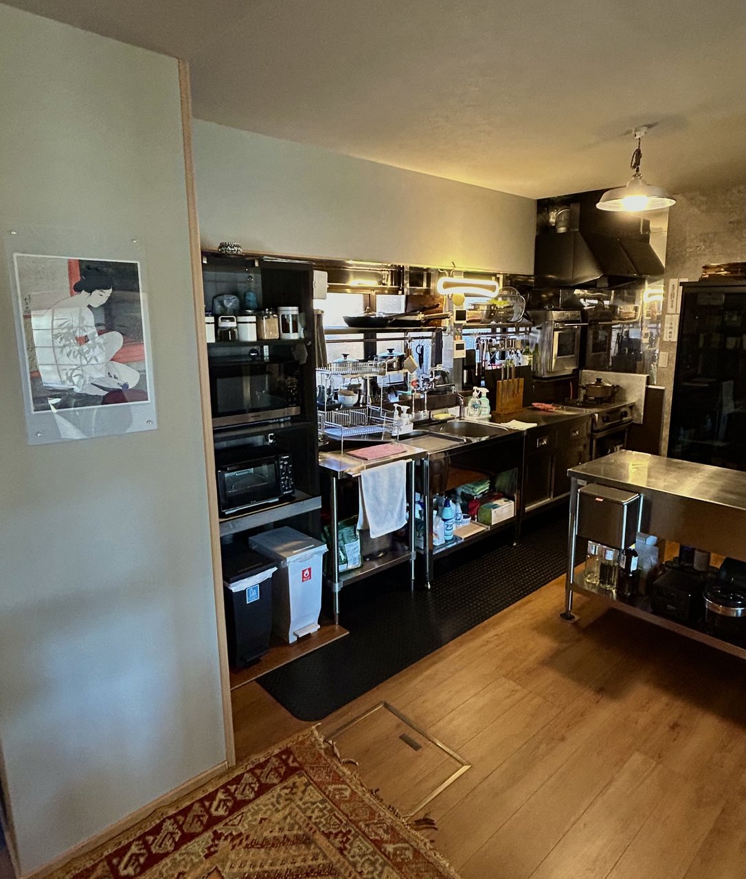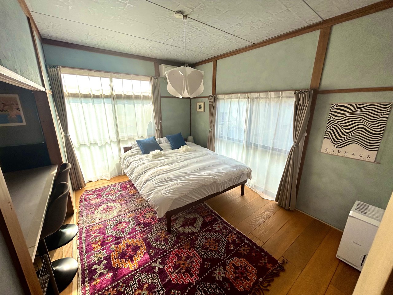 From the outside, a classic Japanese house in a quiet old castle town. Inside, a warm and colorful space filled with art, rugs, and objects collected from around the world.